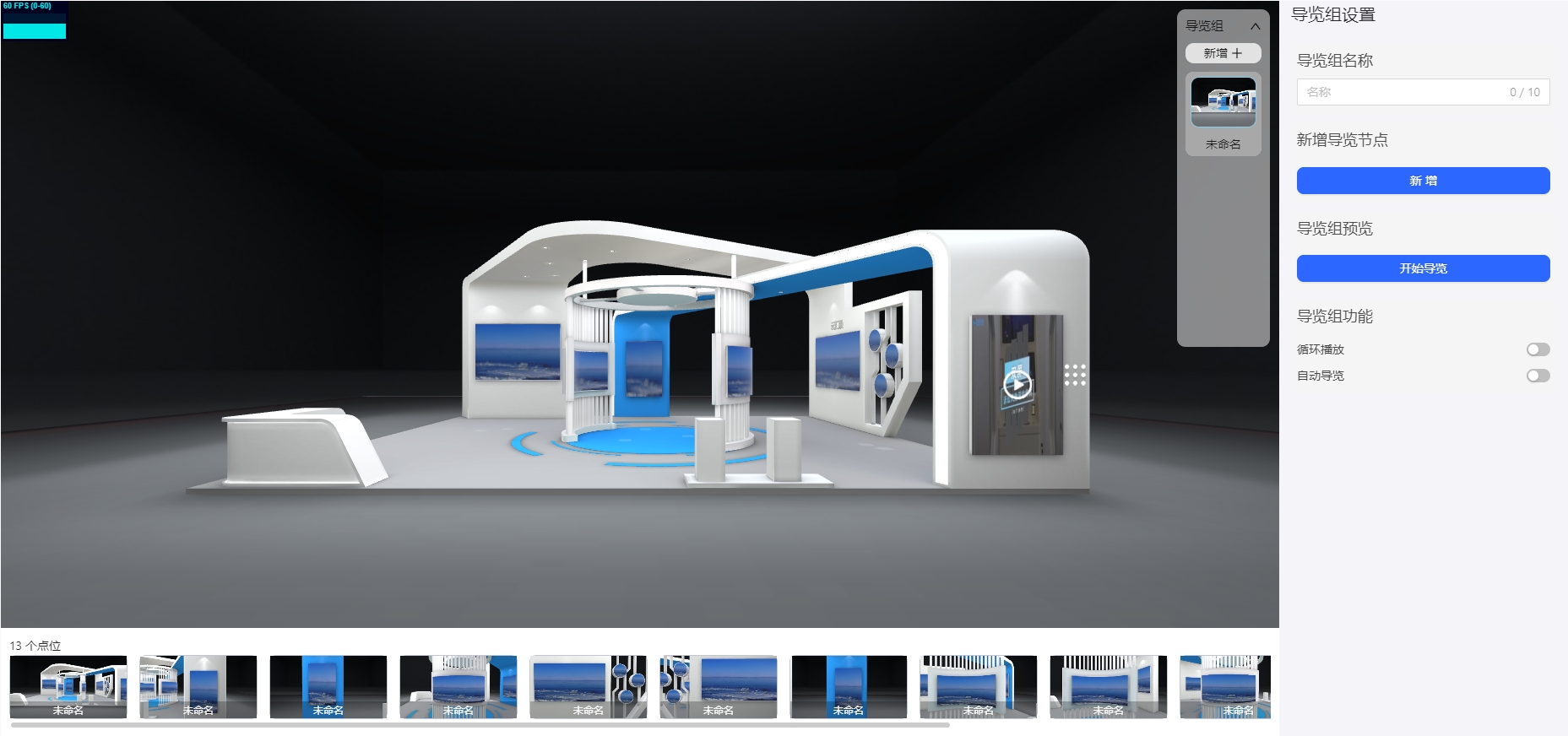 配置完导览点后,点击“开始导览”按钮,场景中该导览组进行播放
